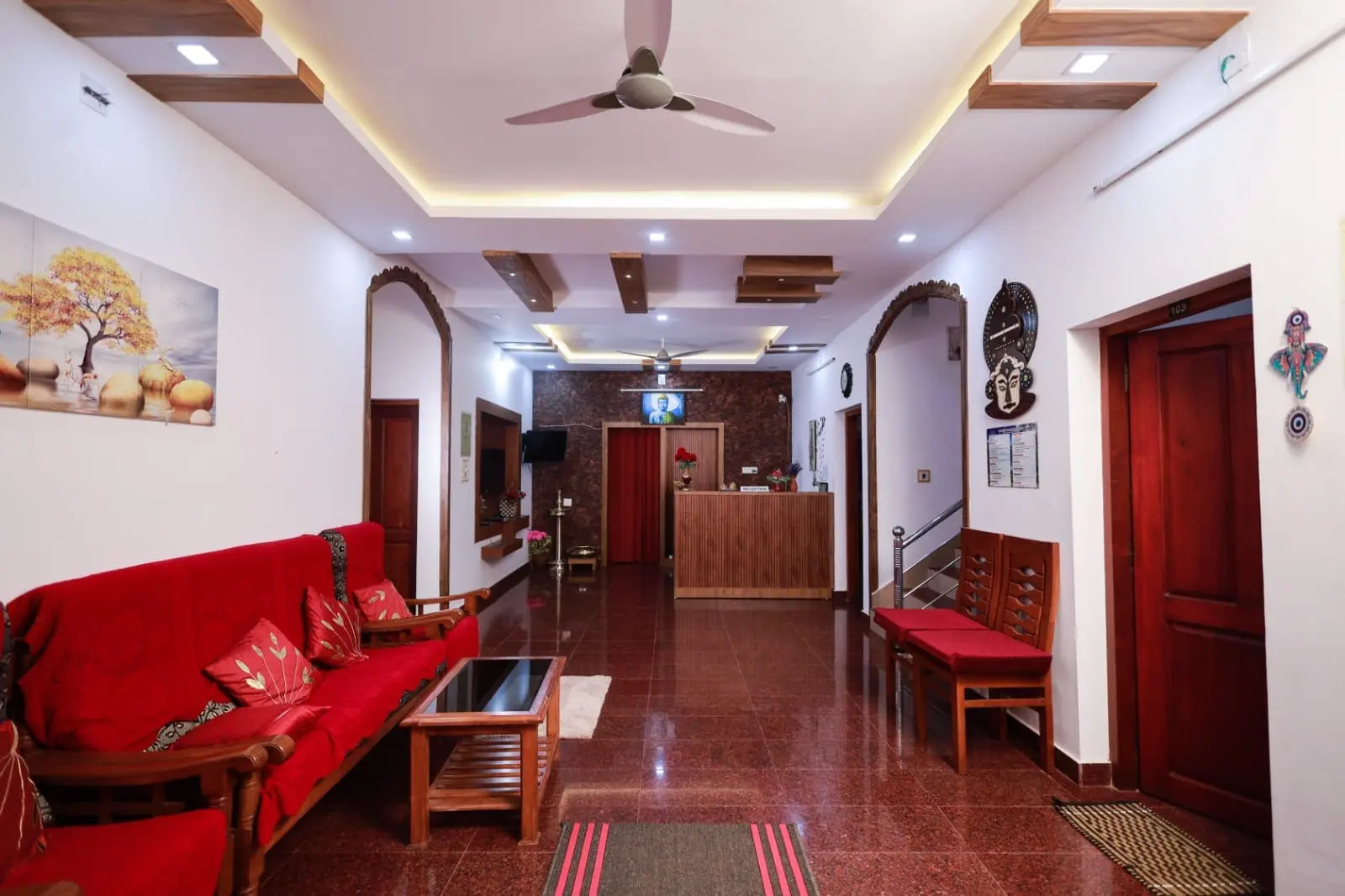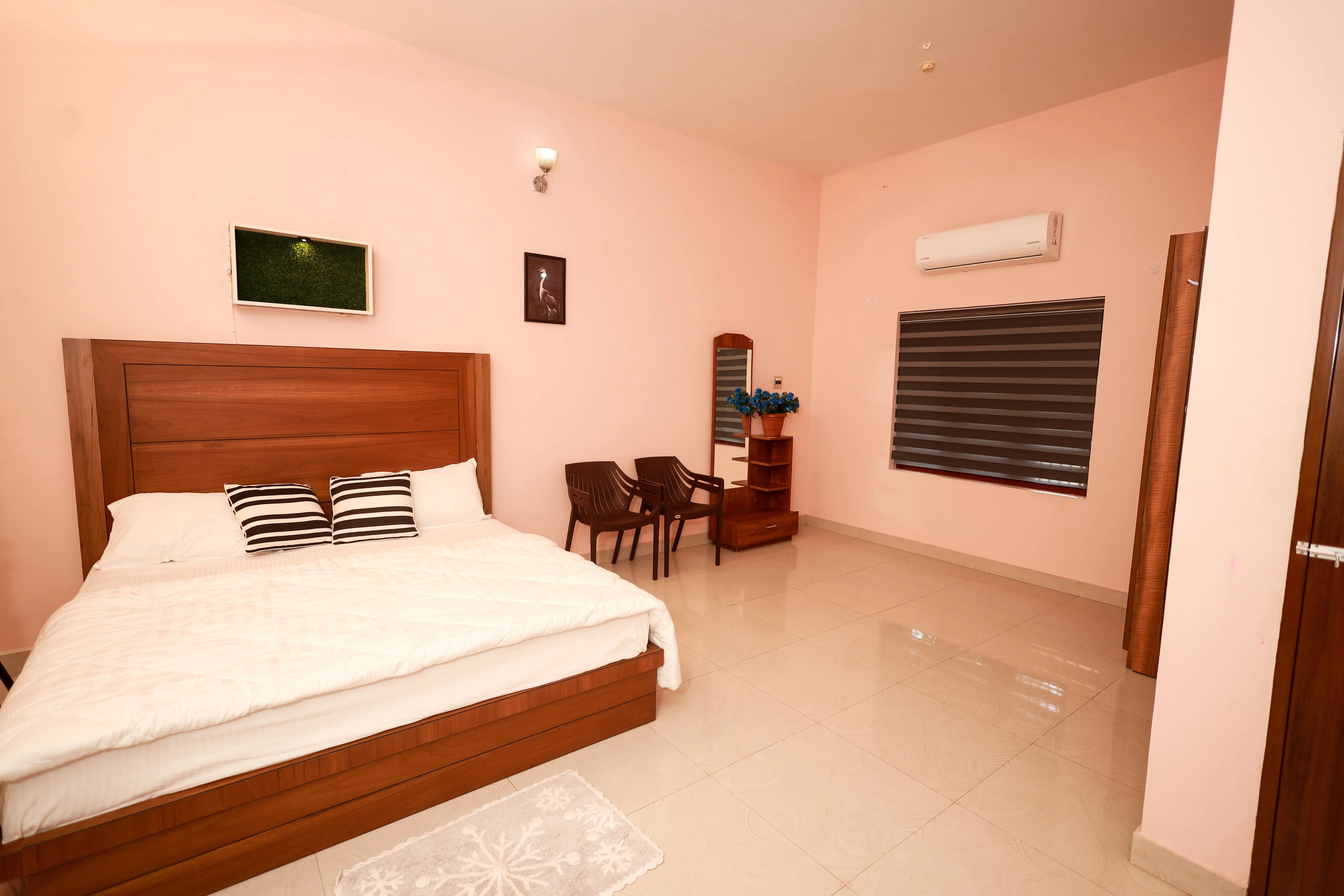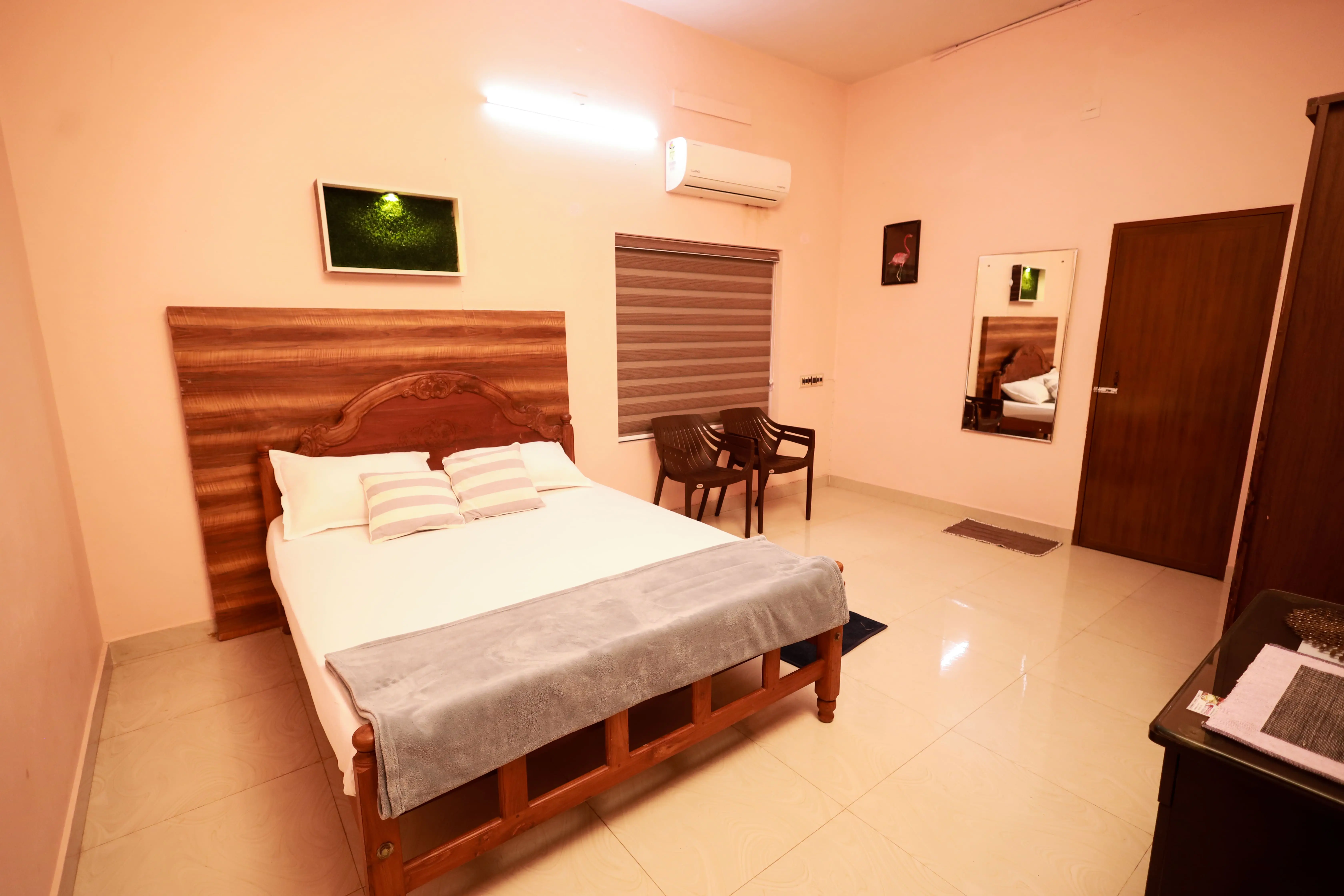 Sreedevi Gardens offers a comfortable and peaceful stay with a total of 6 fully air-conditioned rooms. We have 2 spacious family rooms that can accommodate up to 4 guests, and 4 double rooms perfect for 2 guests. All rooms are well-maintained with attached bathrooms, clean bedding, and essential amenities to make your stay pleasant and relaxing. Extra beds can be provided on request . Free breakfast will be available.